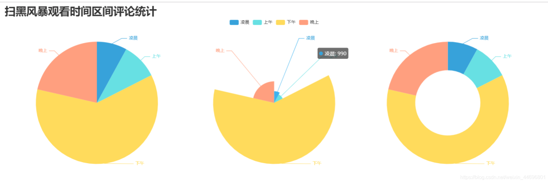 pos_top="8%", # 图例位置调整 ), ) .add(series_name='',center=[260, 270], data_pair=[(j, i) for i, j in zip(num, lab)])#饼图 .add(series_name='',center=[1230, 270],data_pair=[(j,i) for i,j in zip(num,lab)],radius=['40%','75%'])#环图 .add(series_name='', center=[750, 270],data_pair=[(j, i) for i, j in zip(num, lab)], rosetype='radius')#南丁格尔图 ).render('../Html/pie_pyecharts3.html')