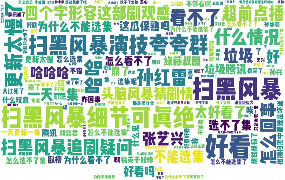 f = open('../Spiders/content.txt', 'r', encoding='utf-8') # 这是数据源,也就是想生成词云的数据 words = f.read() # 读取文件 f.close() # 关闭文件,其实用with就好,但是懒得改了