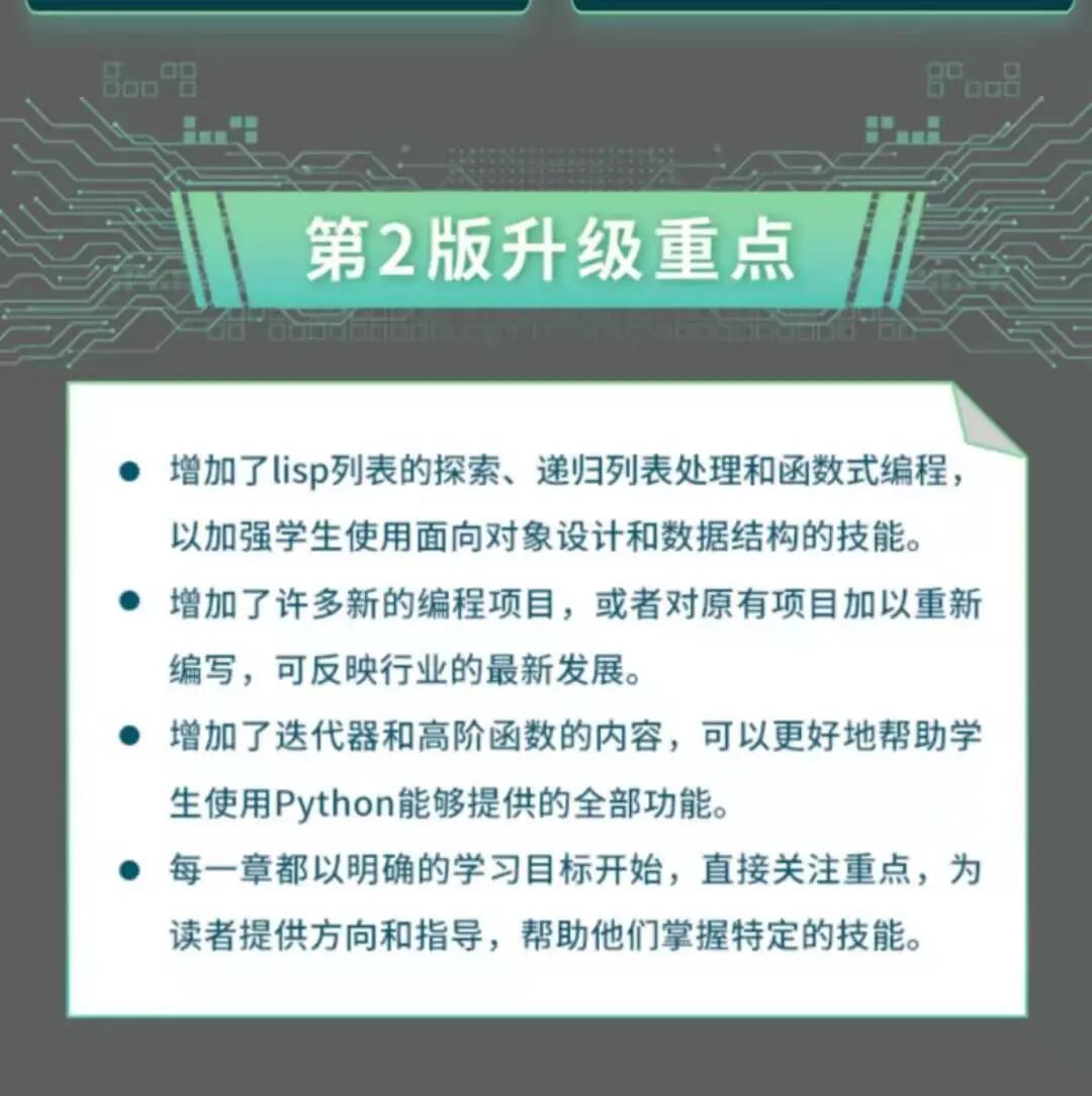 (1)Python的语法非常简单且标准。Python的语句和伪代码算法的语句非常接近,而且Python的表达式使用了代数里的常规符号。这样,你可以花更少的时间了解编程语言的语法,进而把较多的时间花在解决有趣的问题上。