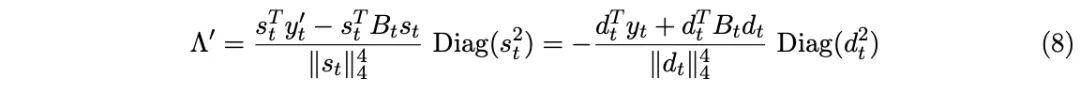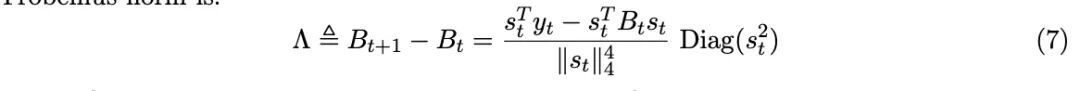 Time and Memory Efficiency(时空复杂度)。为了降低Apollo算法的时空复杂度,我们仿效之前的工作,用对角矩阵来近似Hessian,亦即约束每一步 为对角矩阵。为了满足这一约束,我们需要对公式(5)中的secant equation进行放松。一个常用的方法是weak secant equation[4,5]: