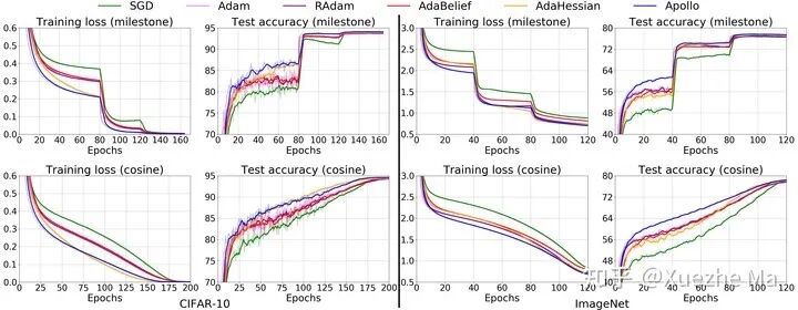 Time and Memory Efficiency(时空复杂度). 在深度学习的优化问题中,由于模型参数的维度巨大,现有的拟牛顿法无法在实际问题中应用。比如经典的L-BFGS[1]算法一般需要记录至少之前5到10步的迭代历史,这在深度学习问题中是不实际的。而现有的一些为随机非凸问题设计的拟牛顿法,例如SdLBFGS[3],甚至需要比L-BFGS更多的时间和空间资源。