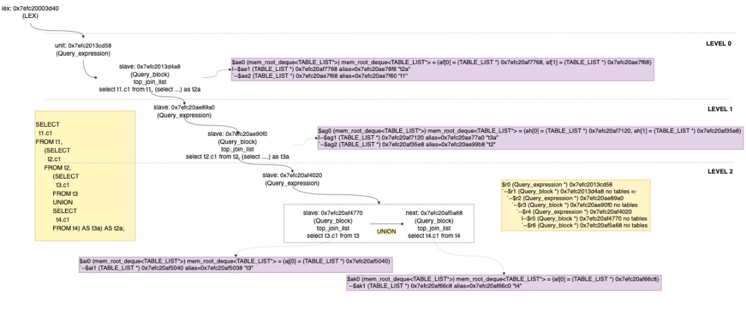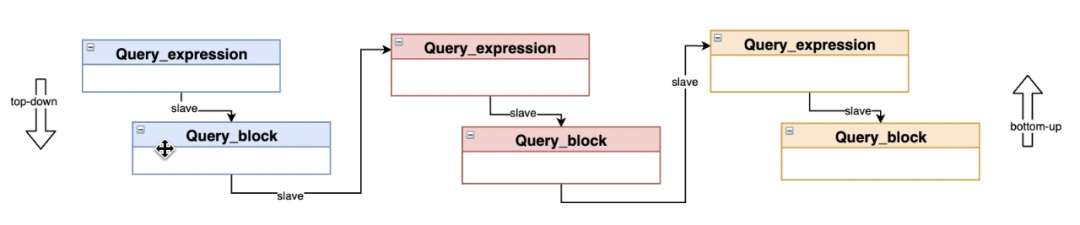 - 外层query expression的子查询为nullptr,derived table是第一层子查询