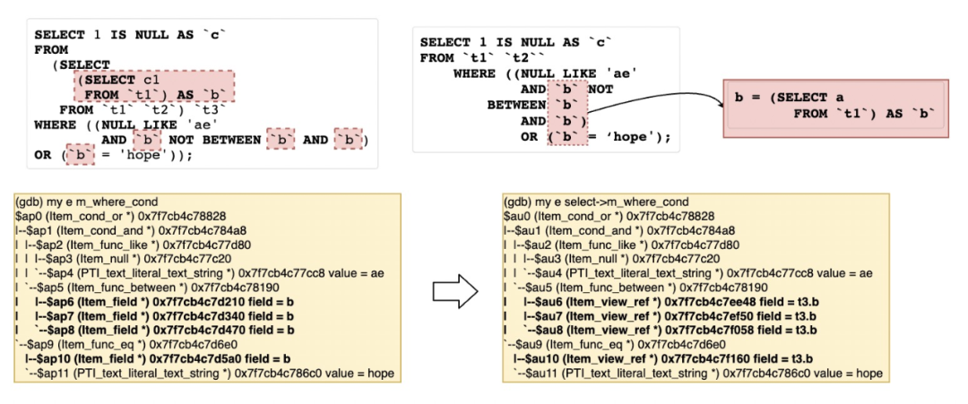 - 将derived table合并到父查询之后,需要重新修改原来derived table中所有对derived table中所有列的引用(fix_tables_after_pullout())。