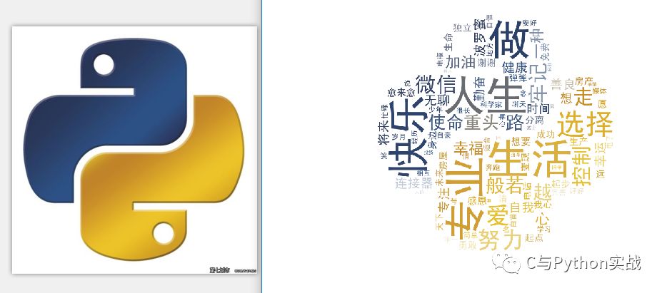 运行效果图如下(左图为背景图,右图为生成词云图片):