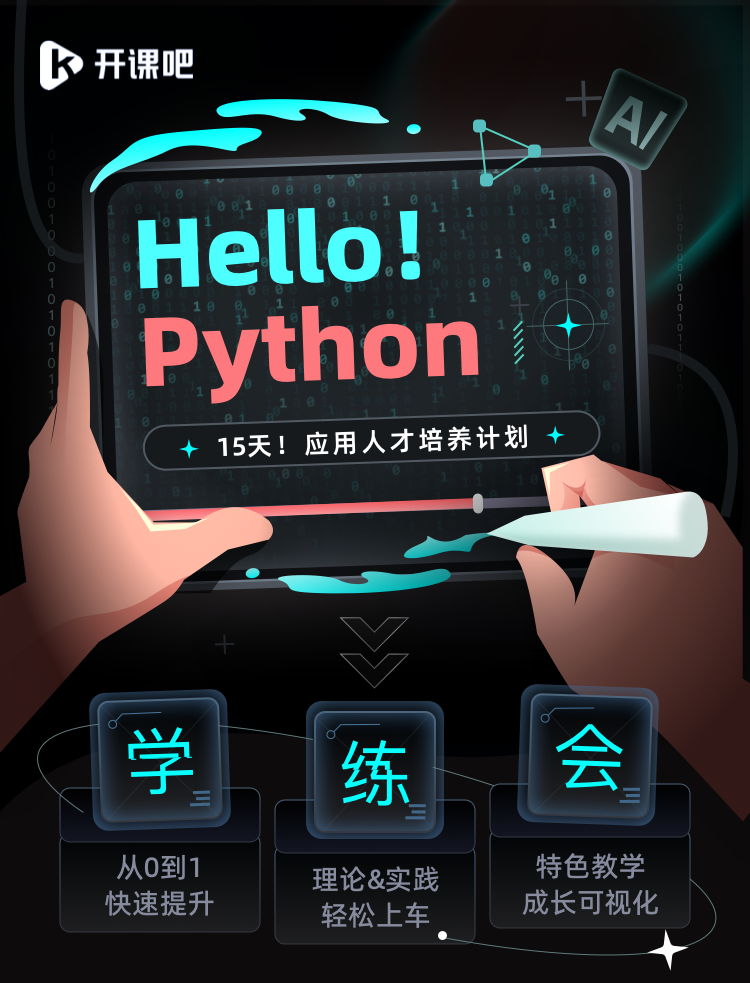 今天给大家推荐的这门《Hello!Python》15天课程,将从基础技能点教学出发,通过直播+助教群伴学+学习成果可视化的方式,陪伴大家进阶提升,能够一定程度上帮助大家避开自学苦恼: