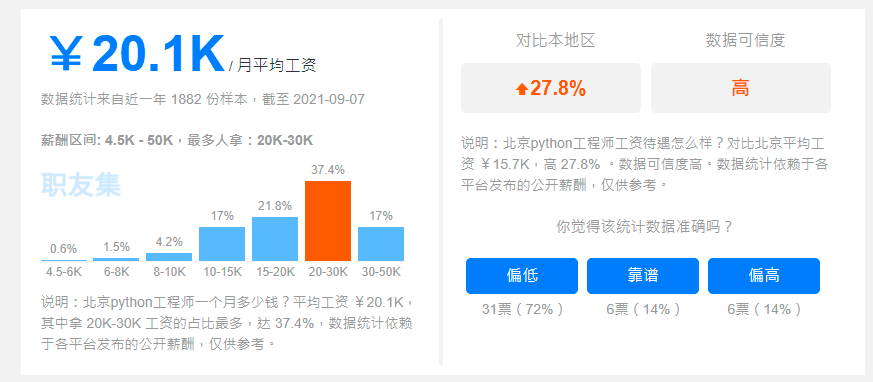 以职友集的数据显示,在北京地区的就达到了20.1K/月平均薪资的水平!掌握这项技能的人才,也越来越“炙手可热”。
