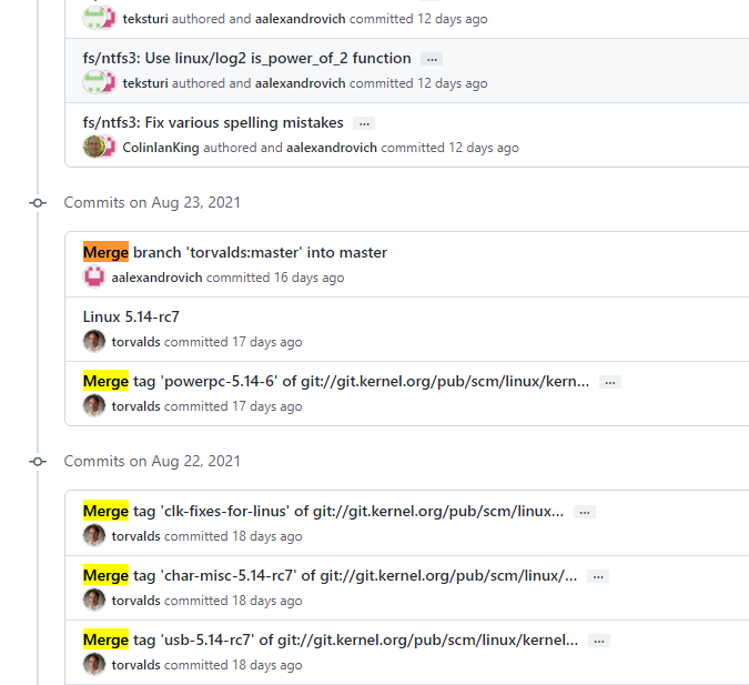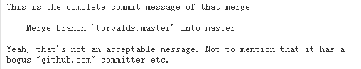 八月初时,Torvalds 就向 Paragon 软件公司提出了一个建议,要求应该提交一个 pull request 把代码合并到内核源代码中,以便将其读 / 写 NTFS 驱动程序包含在即将发布的 5.15 版本内核中。NTFS 是 Windows 原生的文件系统,Paragon 的文件系统实现能够提高 Linux 和 Windows 文件的互操作性,而现有驱动程序的写支持能力不足。事发仓库来自 Paragon-Software-Group /linux-ntfs3。可以看到在 Fork 后作者在 GitHub 初始化 pull 中写了一句 Merge branch 'torvalds:master' into master,Linus 在邮件中直接说这种 message 完全是不可接受的,commit message 应当是有信息量的,可以从 fork 前的消息看到 Linux 仓库中 Torvalds Linus 一直在遵守约定。邮件中还对 GitHub 明褒暗贬,「GitHub 哪都好,就是 merge 不行」。并表示 GitHub 的 merge 只会「创造完全无用的垃圾合并」。Linus 强调说明,Linux 内核的合并需要在符合规则的情况下进行,这就意味着所提交的消息应包含:但 GitHub 把这些都给省略掉了,在 Linux 的 kernel.org 中,可以看到这些信息一目了然。最后 Linus 表示,希望不要再犯这种低级错误了,在 ksmbd 的 pull request 中已经说过一遍了,并且我的回应还是和以前一样:GitHub 的 inital pull 通常有点大病,这次我会接受,但希望你以后开发代码时能够以「合适」的方式。Linus 的这种「直」性格能够极大的提升工作效率,一封邮件就把以后 Linux 相关的 merge 问题解决了,而他的金句也有很多。「Talk is cheap, show me the code.」2000 年 8 月 25 日,在讨论关于内核线程优化的问题时,一个人提出了一个他认为非常高效的方案,但 Linus 并不认同,觉得这个人有点喜欢打嘴炮,也不想辩论了,直接看代码解决好了!这句话也深受广大程序员的认可,广为流传。