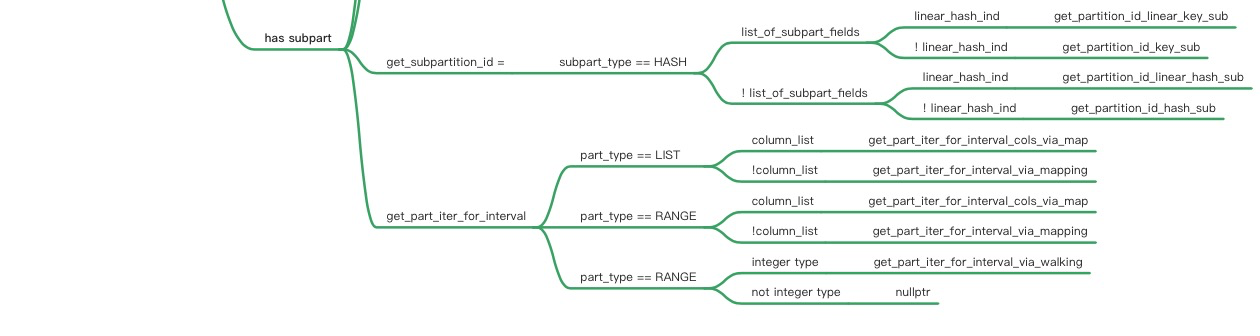 由于剪枝根据HASH/RANGE/LIST及二级分区都有不同,这里简单介绍下剪枝过程,现有prune_partitions是在prepare和optimize阶段会被调用,某些常量子查询被评估执行完。struct TABLE {