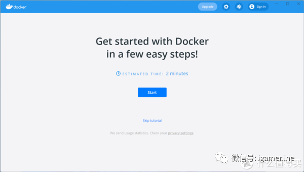 安装完成后,打开 docker 程序,看到如下提示,即说明安装成功。至此,不用管他,让其在后台运行即可!