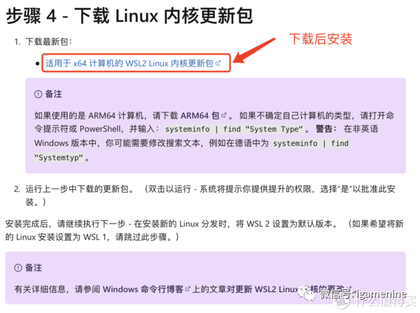 戳右边下载:适用于 x64 计算机的 WSL2 Linux 内核更新包