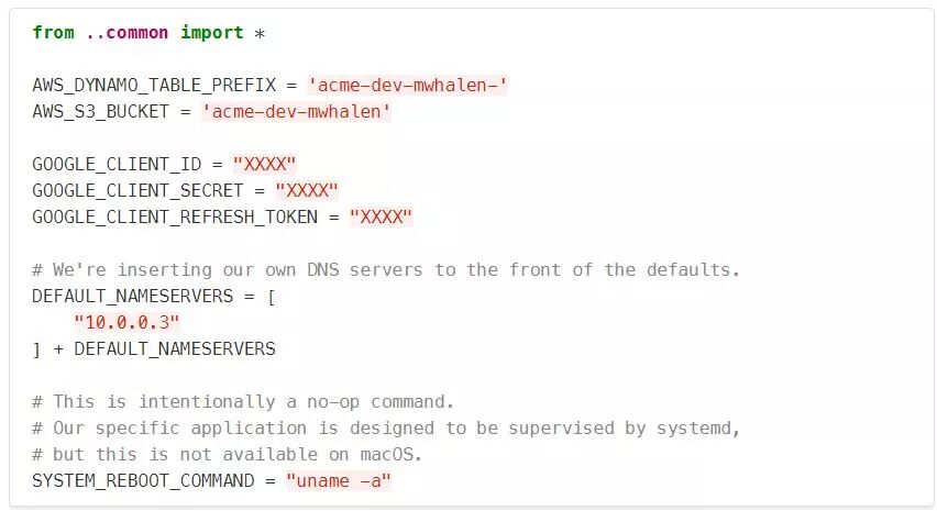 - 因为可以访问公共的DEFAULT_NAMESERVERS,所以我可以扩展它们,而不是复制粘贴任何公共值到我自己的配置中。