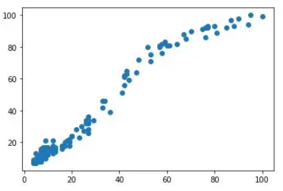 plt.scatter(df['data science'], df['machine learning'])