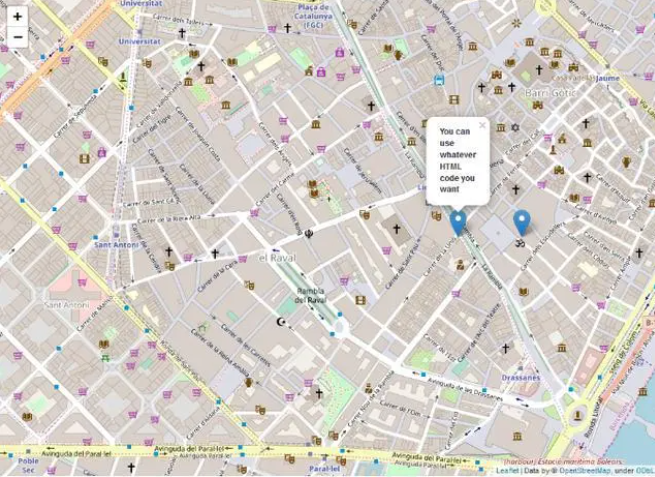 folium.Marker([41.38, 2.174], popup='You can use whatever HTML code you want', tooltip='dont click here').add_to(m2)