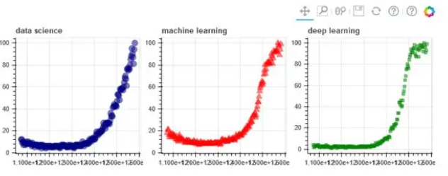 Bokeh是一个库,可用于生成交互式图形。我们可以将它们导出到HTML文档中,并与具有Web浏览器的任何人共享。当我们有兴趣在图形中查找事物并且希望能够放大并在图形中移动时,它是一个非常有用的库。或者,当我们想共享它们并给其他人探索数据的可能性时。
