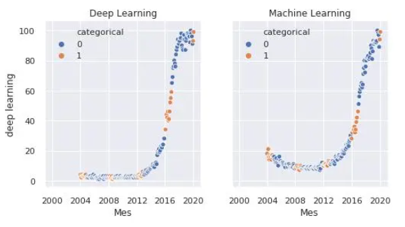 sns.scatterplot(x="Mes", y="deep learning", hue="categorical", data=df, ax=axes[0])