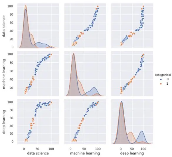 另一个最受欢迎的是配对图,它向我们显示了所有变量之间的关系。如果您有一个大数据集,请谨慎使用此功能,因为它必须显示所有数据点的次数与有列的次数相同,这意味着通过增加数据的维数,处理时间将成倍增加。