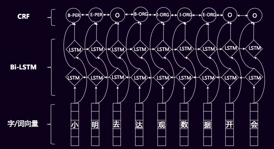 经典的Bi-LSTM+CRF模型如下所示: