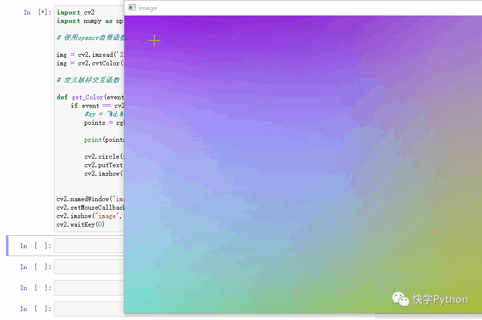 如上图所示,运行时只需鼠标点击,就可以获取当前图片位置的颜色。