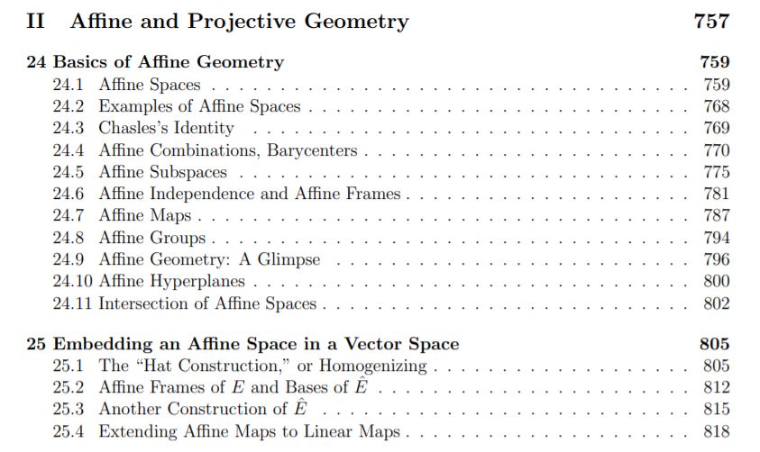 第二部分:线性与射影几何,共3章,170余页。