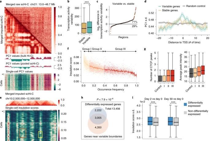 开发了能系统分析可变多尺度 3D 基因组特征(A/B 区室分数和 TAD 样域边界)的方法,并证明了这些特征对基因转录的影响。
