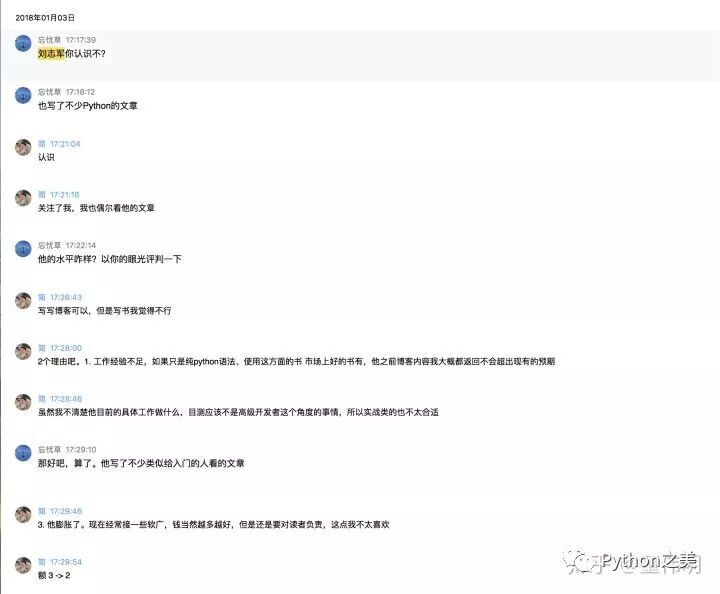 说回到年初,有个编辑想找 @刘志军 (也就是Python之禅维护者)写书,和我聊了几句,下面是聊天记录: