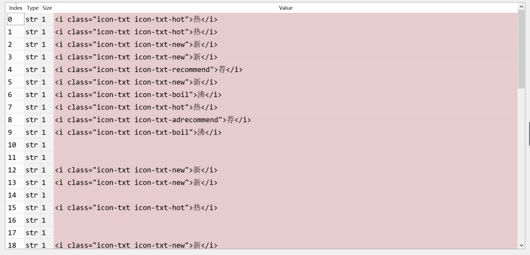上面显而易见我们要提取的指数信息就在每个元素里面,同样利用re