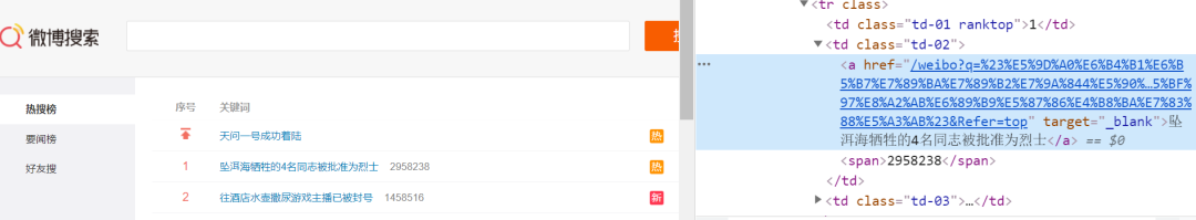 一、抓取热搜数据 进入微博热搜榜https://s.weibo.com/top/summary