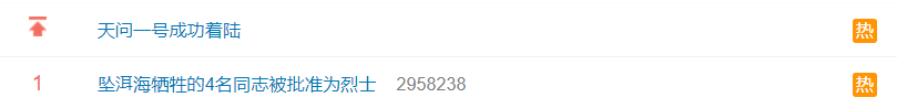 “天问一号成功着陆”这一话题有指数无搜索量,是属于缺失数据,这里我们删除它,同样用到列表提取元素方法。