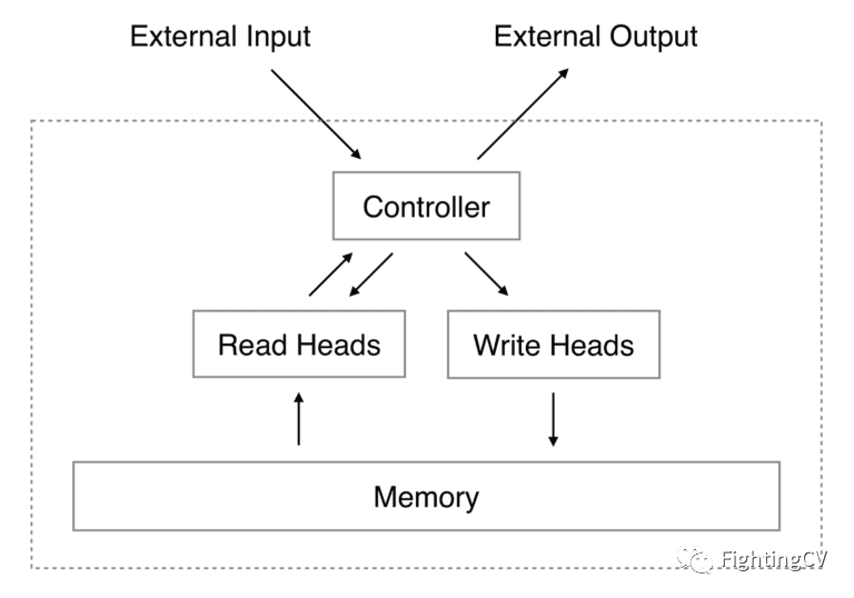记忆增强神经网络(Memory-Augmented Neural Networks,MANNs)就是针对这一缺陷而提出的新算法。神经图灵机(NTM)是一种类型的 MANN。它由一个神经网络控制器组成,该控制器接受输入产生输出,并对存储器执行读写操作。