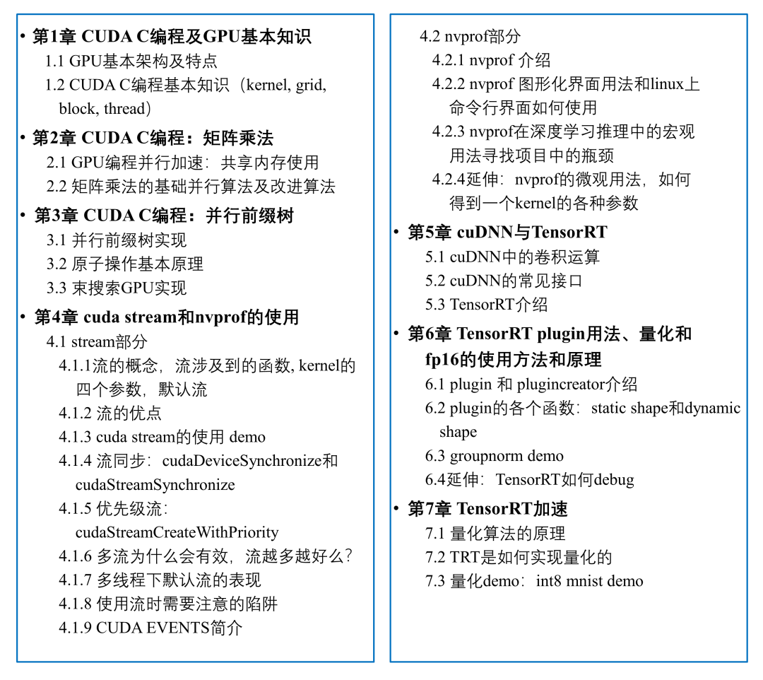 深蓝学院开设了《CUDA入门与深度神经网络加速》的课程,以上学习路径一套打包带走~并且使大家能够具备CUDA编程操作能力,使用cuDNN、TensorRT这两个当下热门的深度神经网络加速的工具。