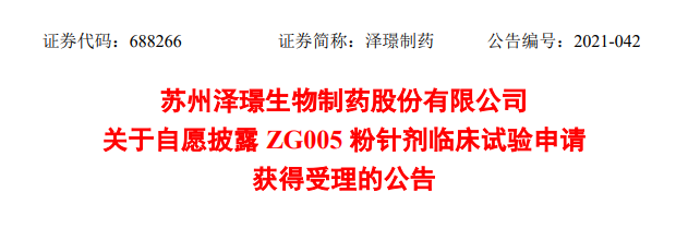 10 月 24 日,泽璟制药宣布 PD-1/TIGIT 双抗 ZG005 的临床申请获得 CDE 受理。这是该靶点组合国内第 2 款申报临床。