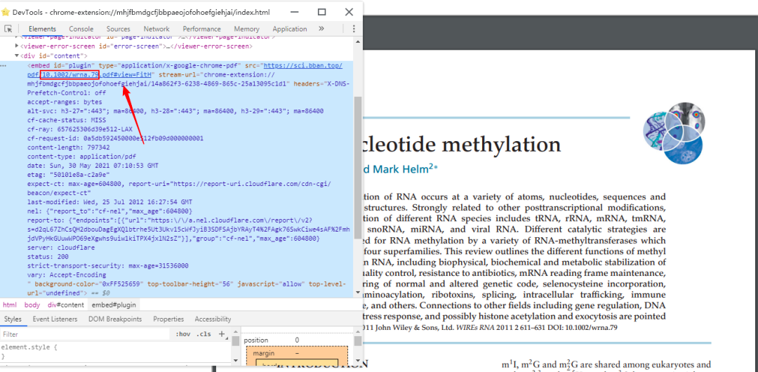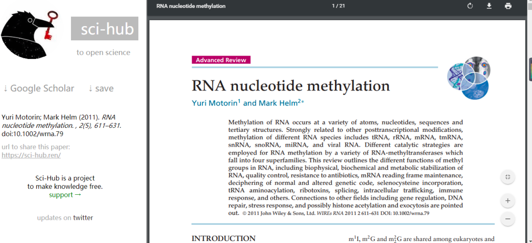 最后一部分就是下载了,相关专业的应该知道下载文献的一个网站叫sci-hub,这次我们就链接到这个网站进行下载,将doi号输入该网站,就会跳转得到一个PDF,如图: