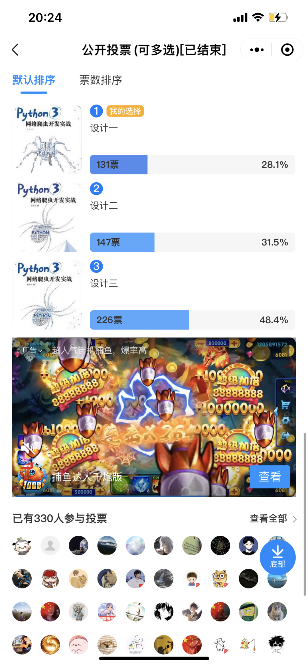 前些天我发起了一个投票,让大家帮忙为我即将出版的新书 《Python3网络爬虫开发实战(第二版)》选几个好看的封面,大家也纷纷帮忙出谋划策。