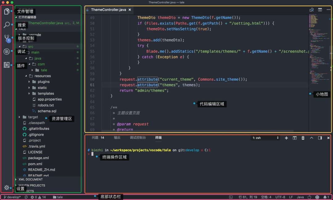 1.2 安装code 安装后打开命名面板Command+Shift+P,搜索shell命令,点击在PAth中安装code命令,然后在上面菜单栏里面点击终端,开启一个新终端。在这里面使用code命令打开文件或文件夹