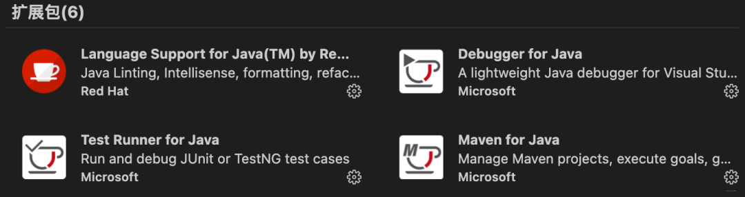 Language Support for Java(TM) by Red Hat: 运行Java代码 Maven for Java: 在Java环境下构建应用程序的软件 安装完毕之后.