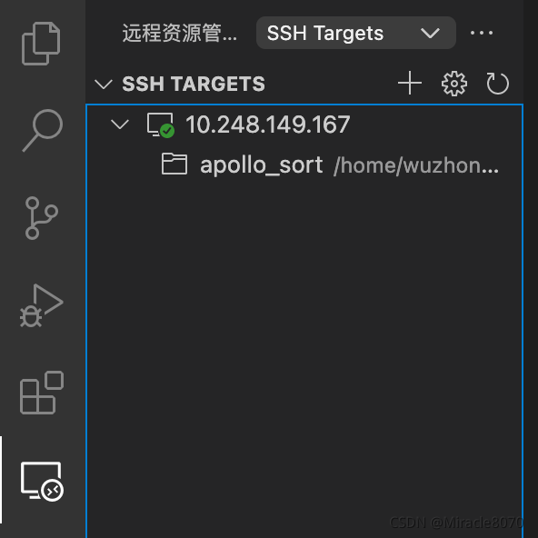 这个需要安装插件Remote-SSH, command+shift+x打开安装。安装完了之后,左下角绿色的地方点击,然后选择connect to host,输入IP和用户名添加即可, 这样就链接到了远程服务器。