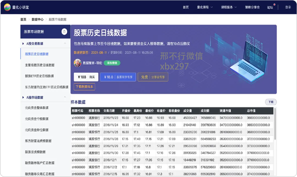 量化小讲堂数据网址:www.quantclass.cn/data/stock