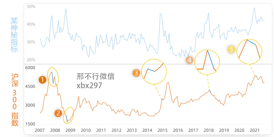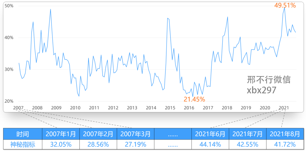 下图中的蓝色曲线就是这个神秘指标,从2007年开始至今。