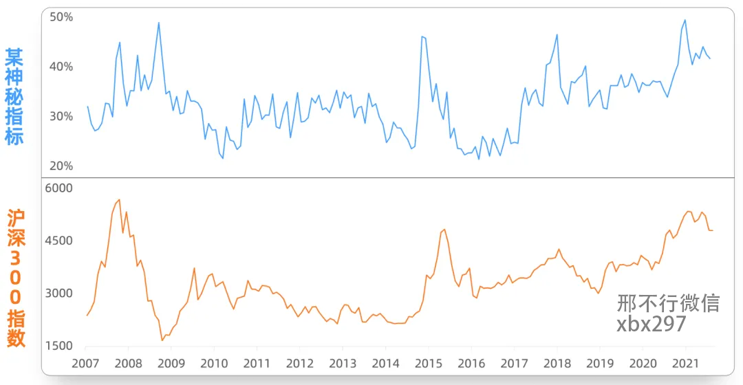 光看上图,大家可能觉得也平平无奇。我们把这个指标和沪深300指数放在一起对比看。