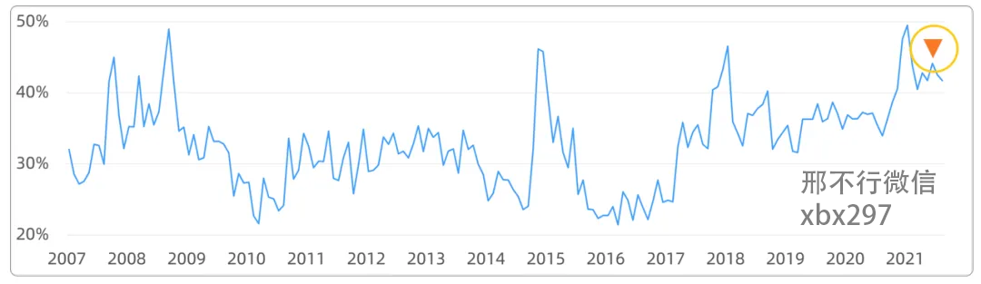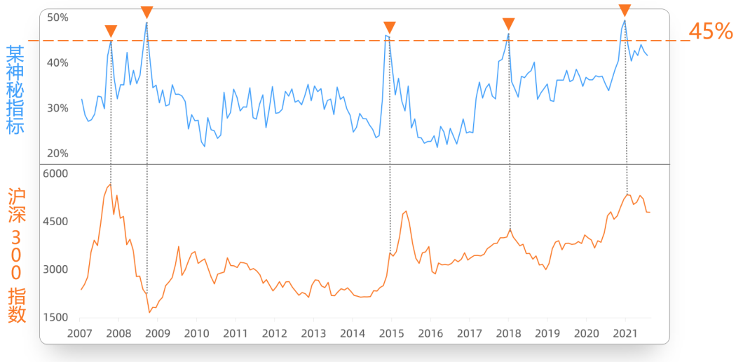 所以总体而言,当这个指标超过45%时就意味着我们应多注意未来的风险或机会。