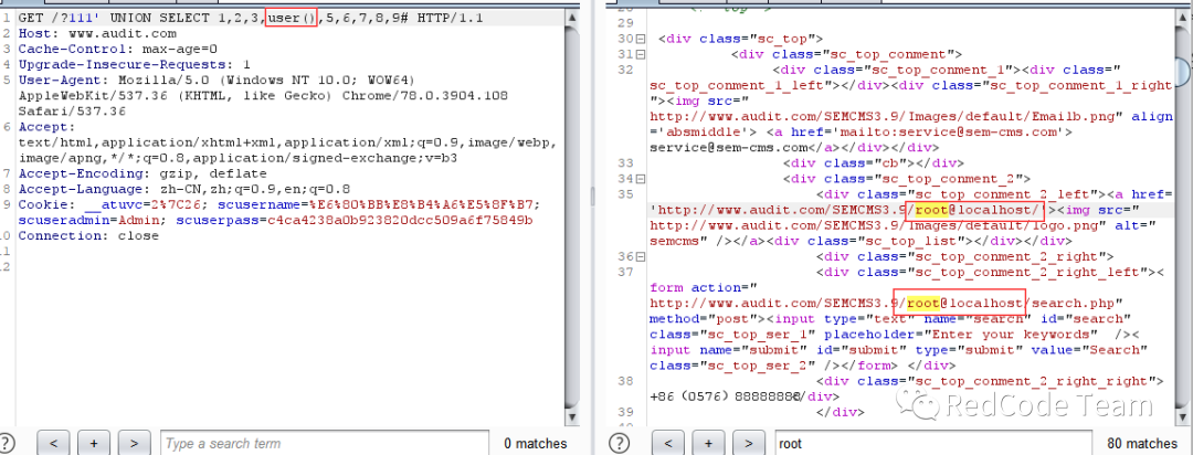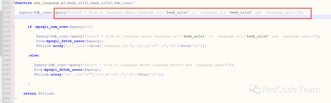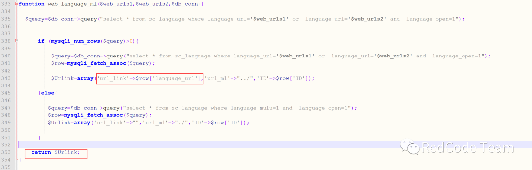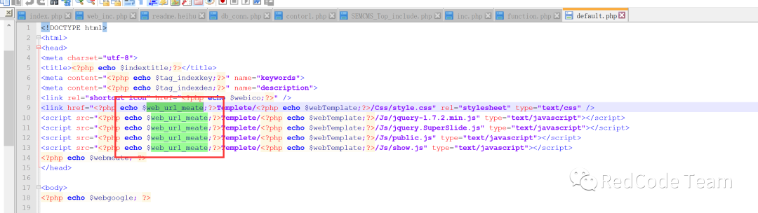 这个时候$urlml携带着SQL语句的结果集,我们通过前台模板看一下在哪里输出了该结果集。将SQL语句下标为url_link拼接给web_url_meate变量,好了,我们回到index.php找一下模板文件。Payload:?111' UNION SELECT 1,2,3,user(),5,6,7,8,9#0x03 漏洞信息