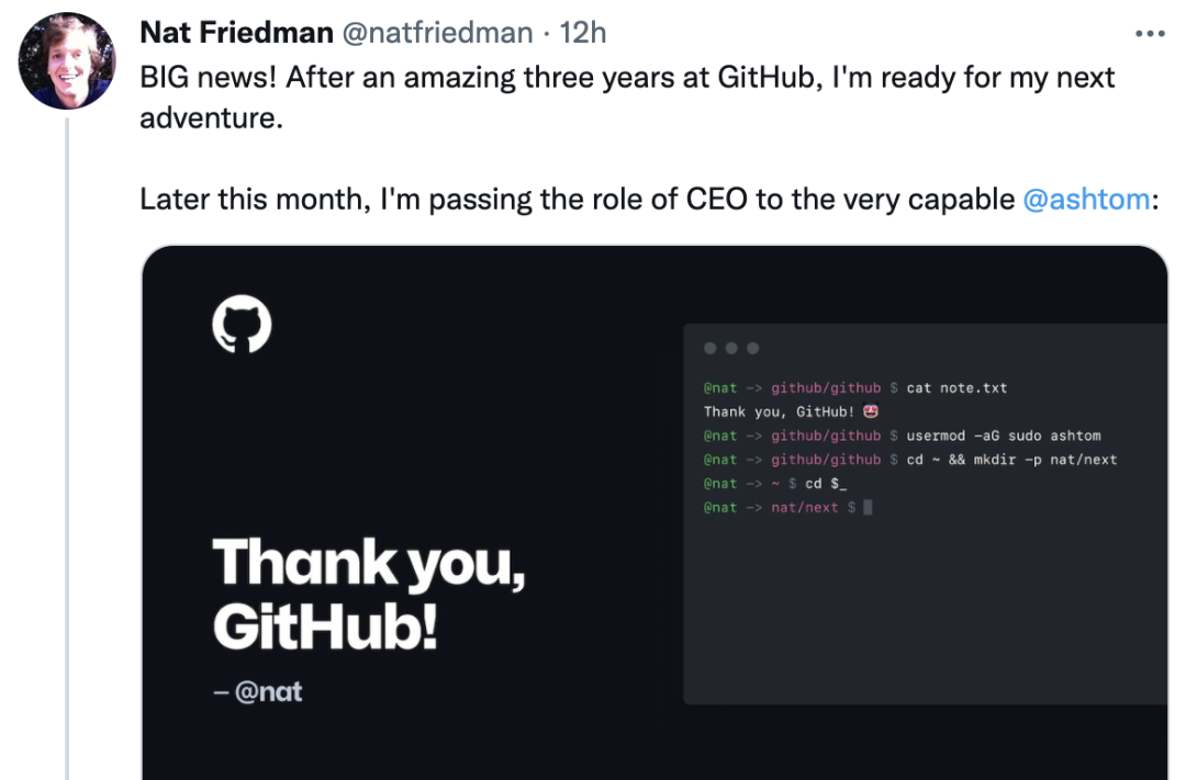 https://www.cnbc.com/2021/11/03/microsoft-github-ceo-nat-friedman-replaced-by-thomas-dohmke.html