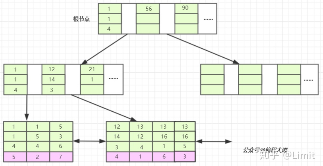 所有叶子节点均在同一层 、叶子节点除了包含了关键字和关键字记录的指针外也有指向其子节点的指针。只不过其指针地址都为 null 对应下图最后一层节点的空格子;
