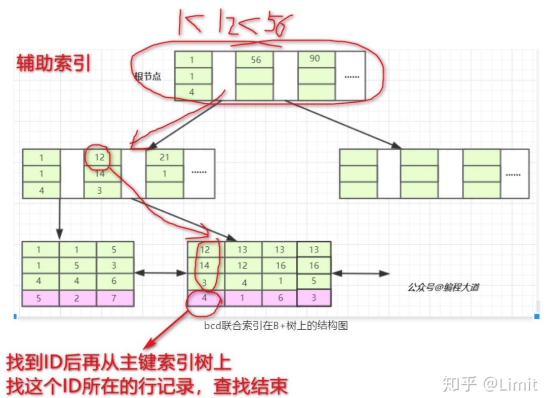 当 (张三,20,F)1 这样的数据来检索的时候,b+ 树会优先比较 name 来确定下一步的所搜方向,如果 name 相同再依次比较 age 和 sex,最后得到检索的数据; 当 (20,F) 这样的没有 name 的数据来的时候,b+ 树就不知道下一步该查哪个节点,因为建立搜索树的时候 name 就是第一个比较因子,必须要先根据 name 来搜索才能知道下一步去哪里查询。 当 (张三,F) 这样的数据来检索时,b+ 树可以用 name 来指定搜索方向,但下一个字段 age 的缺失,所以只能把名字等于张三的数据都找到,然后再匹配性别是 F 的数据了,这个是非常重要的性质,即索引的最左匹配特性。 注意:在查询语句中的顺序是无关紧要的,比如 WHERE filed1 = 'xx',filed2 = 'mm',filed3 = 'nn' 与WHERE filed3 = 'xx',filed1 = 'mm',filed2 = 'nn' 是没有任何区别的。