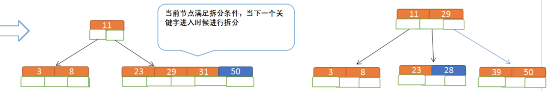 我们定义一个 5 阶树(平衡 5 路查找树;),现在我们要把3、8、31、11、23、29、50、28 这些数字构建出一个 5 阶树出来;