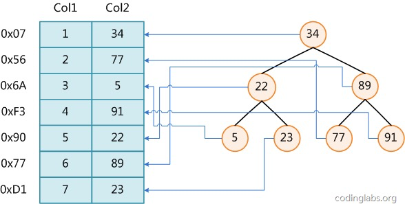 比如上表左侧为数据库中的多行数据,右侧为索引(数据结构为二叉搜索树类型):