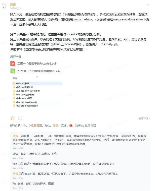 为满足星球成员对于Python安全开发高级技术的进一步需求,2021年5月开始我们增加了新的高级课程【Python安全开发 2.0 计划】,这一版教程主要围绕Python安全开发及实操,希望能更好地维护好星球生态环境,持续的给大家带来帮助。