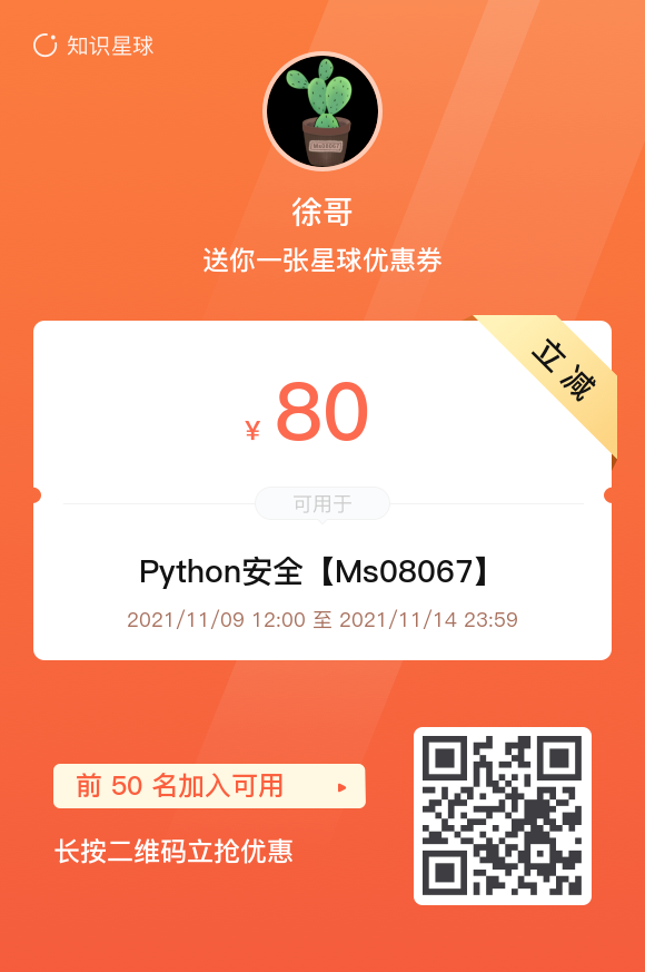 (已经在星球里的成员可继续免费学习“Python安全开发 2.0 计划,无需额外费用)