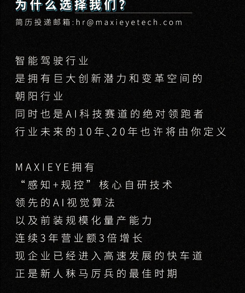 智驾汽车MAXIEYE 招聘|SLAM、深度学习、融合、规划控制工程师等岗位(校招/实习)